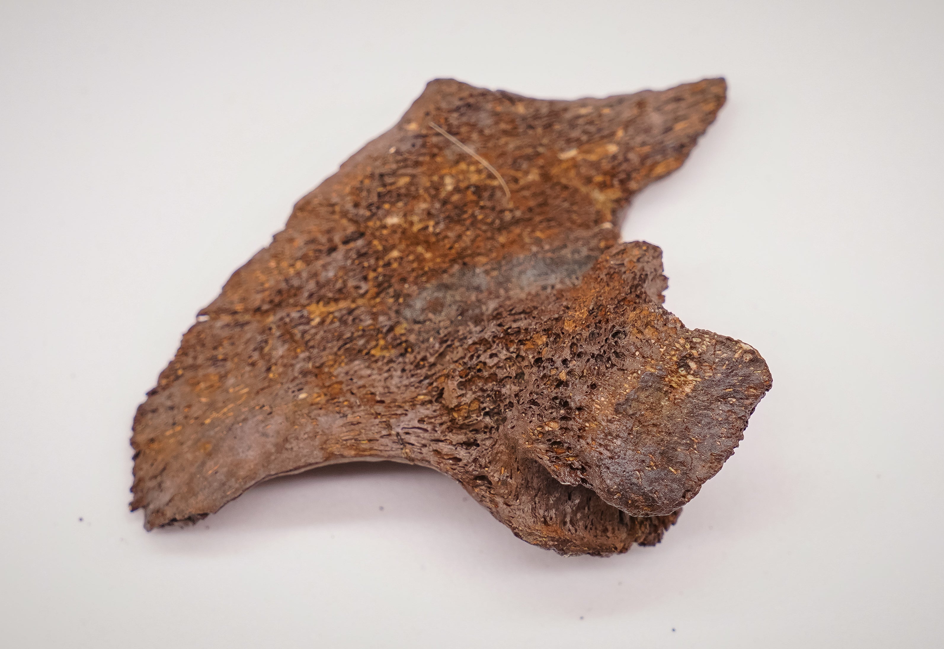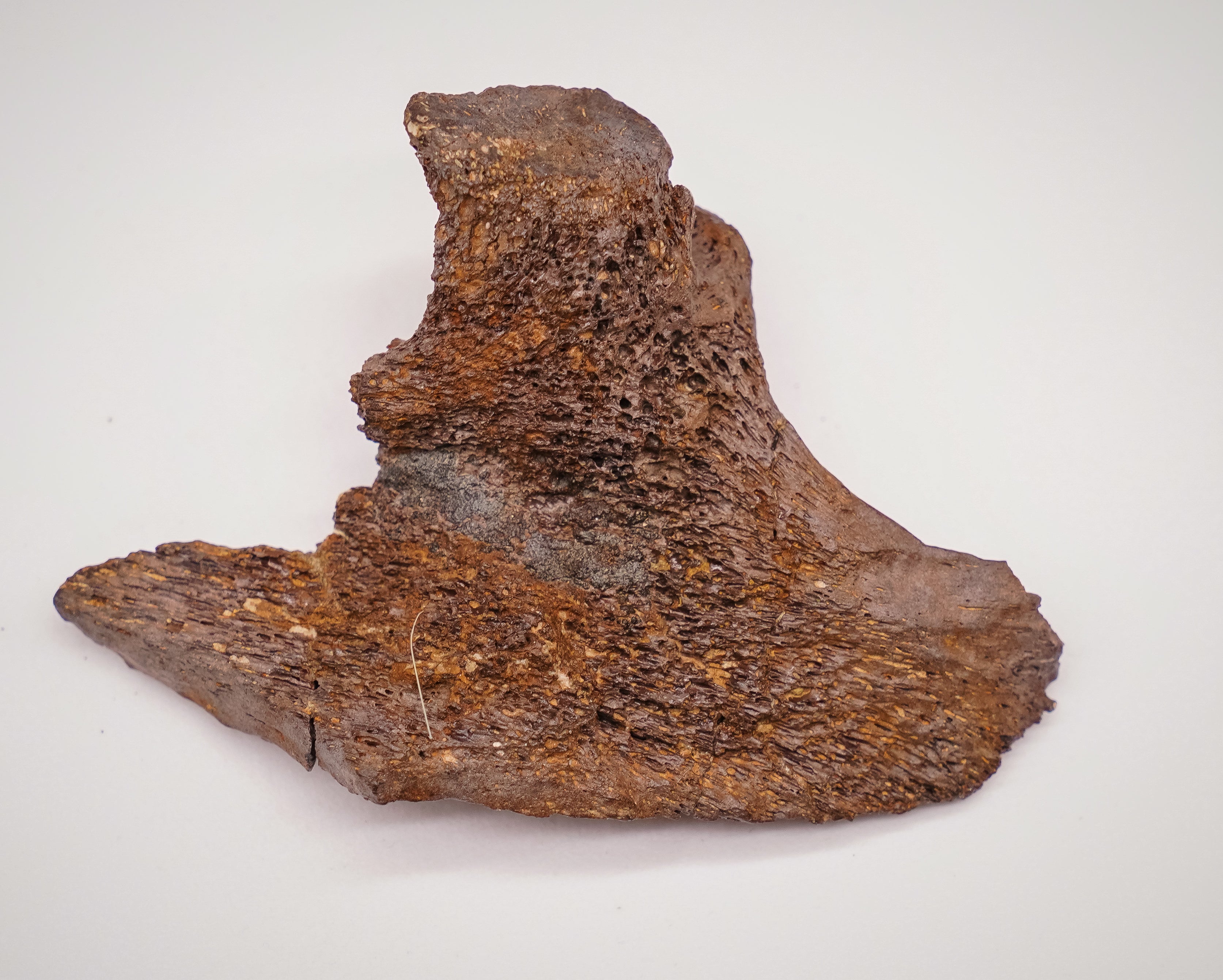 This is a ~4"x3"x1.5" vertebrate bone from a real dinosaur. Species is Edmonotosaurus, butter known as a duck bill, This fossil was collected in the Hell Creek Formation of Perkins County, SD. It was collected on private land with owner's permission.