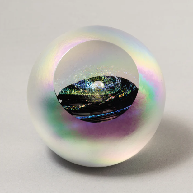 We've long been fascinated by that bright, ever-changing fixture of our night sky. Inspired by our artist's interpretation of the moon, each weight is created using dichroic glass, glow material, and precious metals