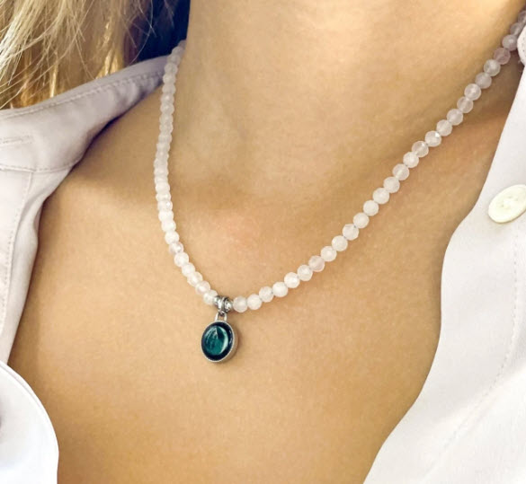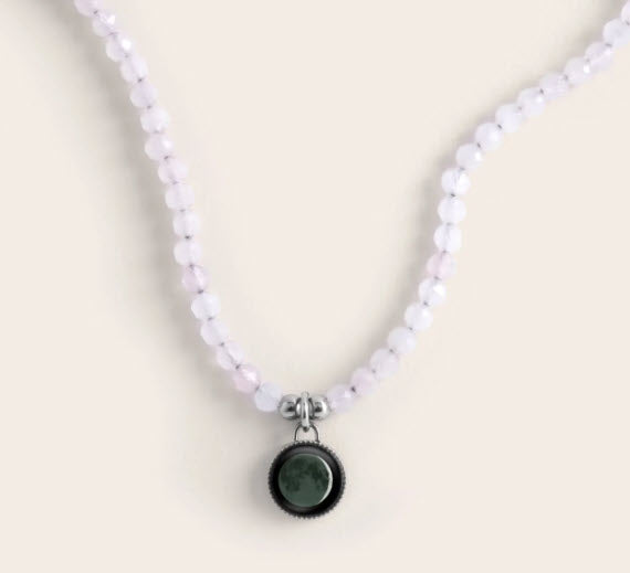 Welcome the new year and set new intentions with the Bhavana Crystal Necklace – an enchanting piece of jewelry that celebrates the powers of manifestation and intention-setting. Crafted with the properties of genuine crystal gemstones, it’s named after the Sanskrit word for cultivating, manifestation, and calling into existence. Choose to couple the moon from your special date with the protective energy of black agate, the cleansing energy of gray agate, or the loving energy of rose quartz to create your own unique and powerful combination.