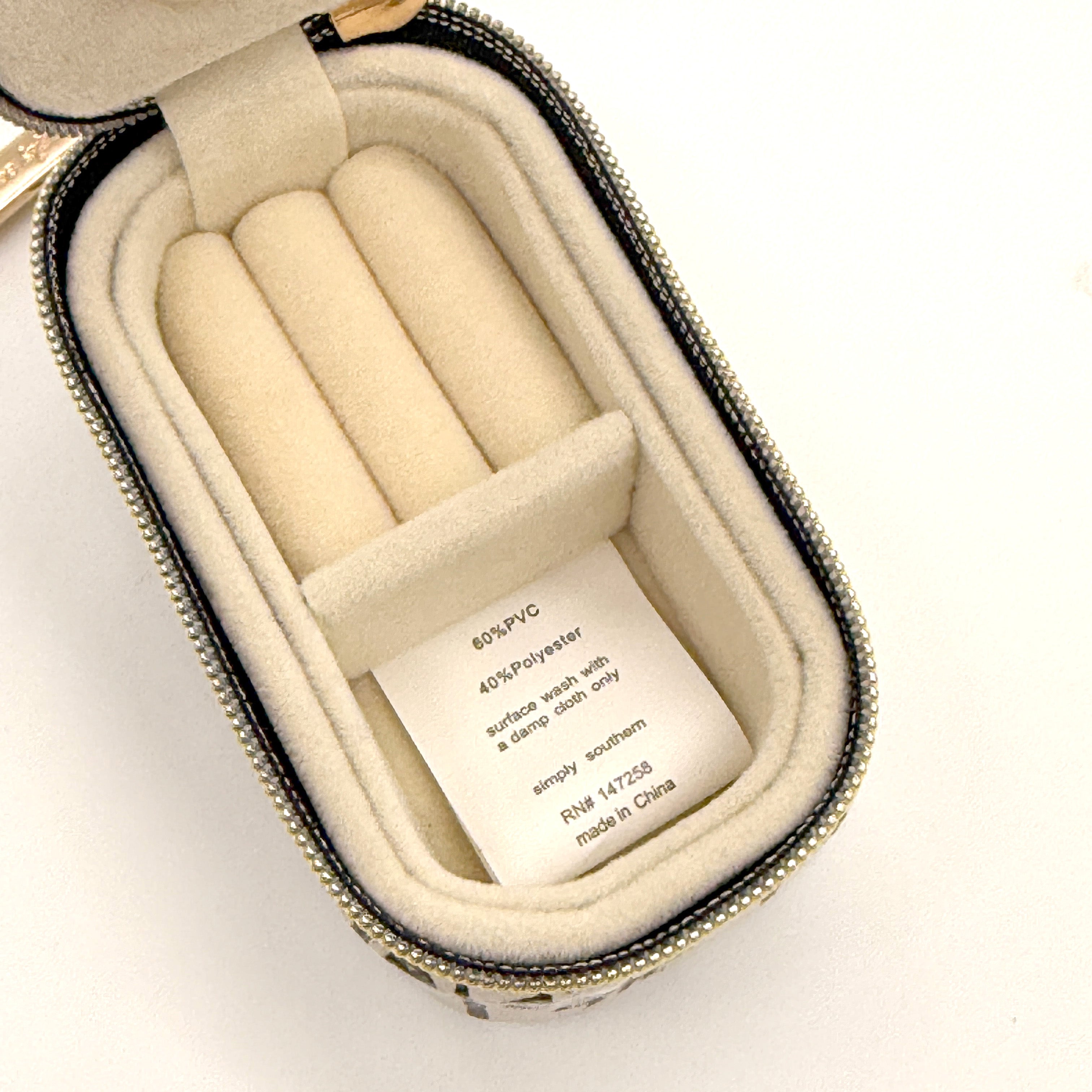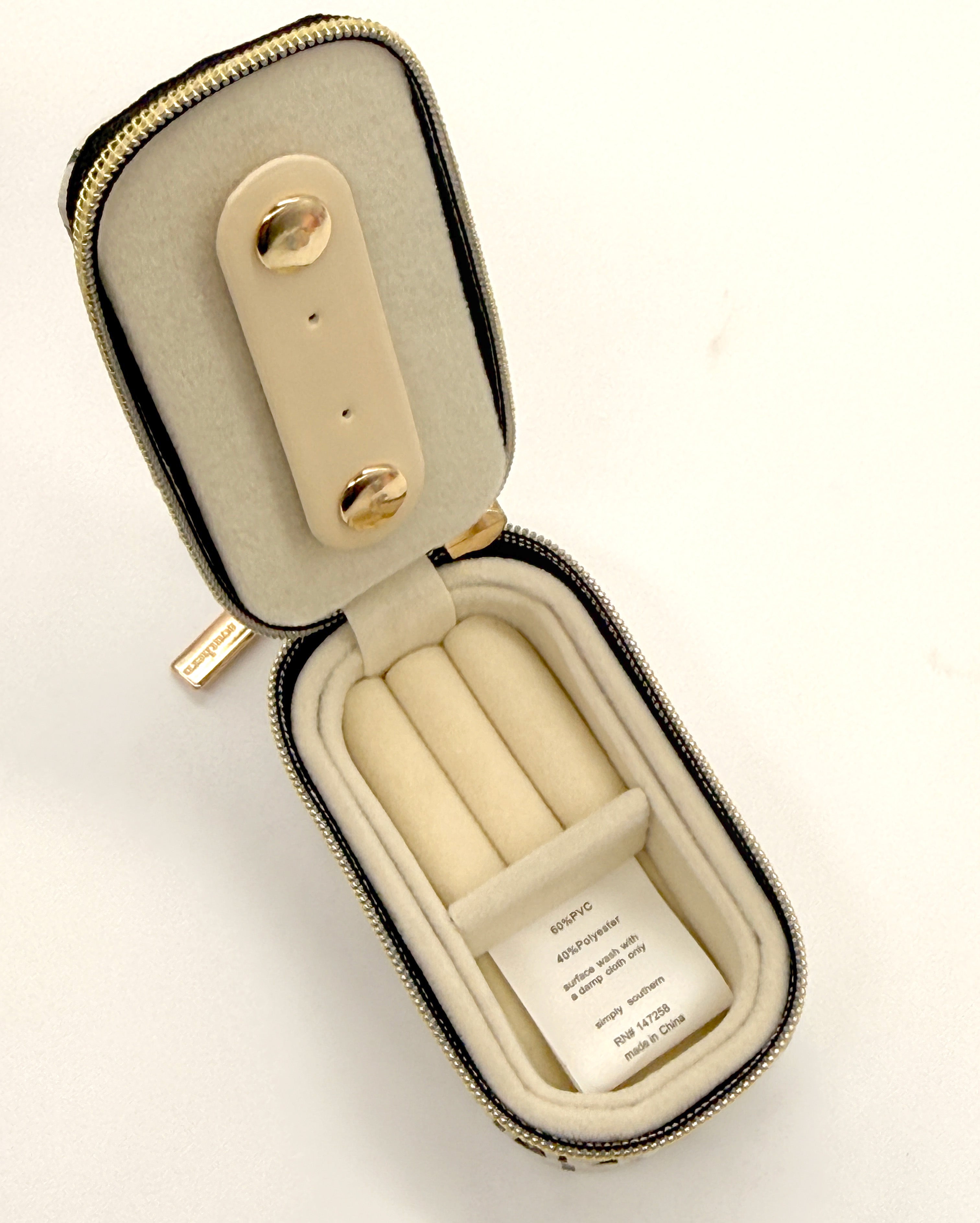 • Compact zippered jewelry organizer