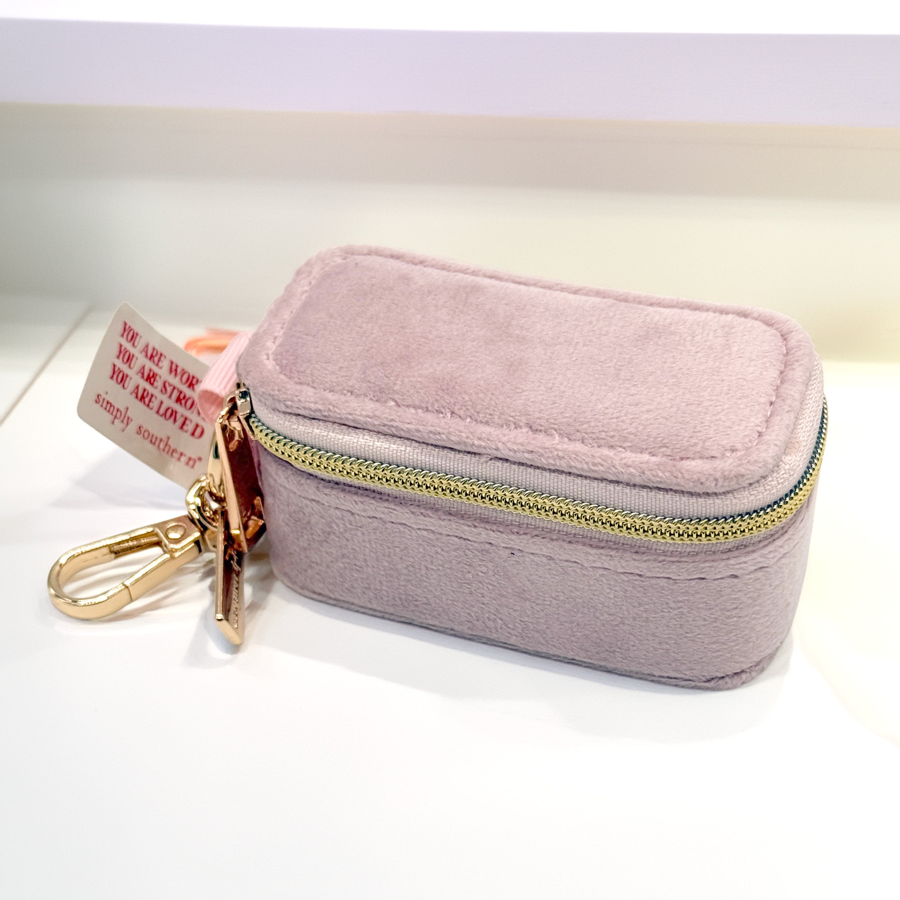 Keep your favorite jewelry safe and secure wherever you go with the Simply Southern Portable Jewelry Case Keychain. This compact zippered organizer is designed for travel, everyday use, or tossing in your purse when you're on the move.