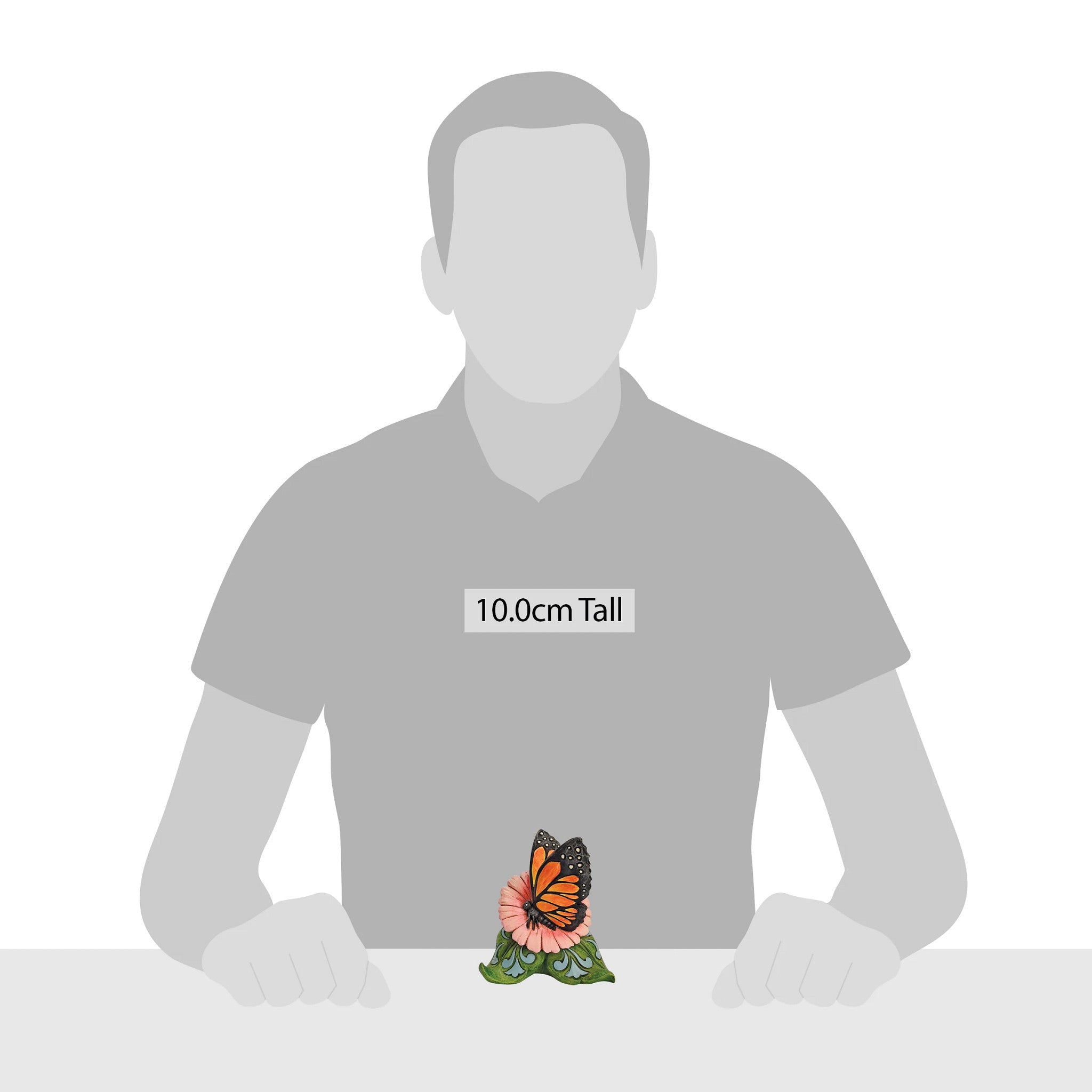 Celebrate the majestic beauty of the monarch butterfly with this stunning figurine by Jim Shore. Known as the king of butterflies, the monarch dazzles with its vibrant, enchanting wings, perched gracefully atop a rosemale flower. Part of the Heartwood Creek collection, this 4-inch figurine is beautifully hand-painted and meticulously crafted, showcasing Jim Shore's signature folk-art designs inspired by American and European traditions. With intricate patterns and timeless charm, this collectible brings a touch of natural elegance and nostalgia to your home décor.