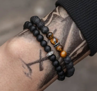 This men's stretch beaded bracelet set offers a great combination of style and durability. The metal beads provide both flexibility, allowing for a comfortable fit, and structural strength, ensuring long-lasting wear. The bracelet also features an adjustable stretch to fit most wrist sizes.