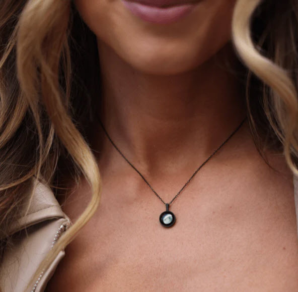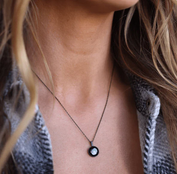 More than just an accessory, the Nightfall necklace is a symbol of mystery and refinement. The deep, matte black surface adds a touch of sophistication, while the moon pendant brings a sense of celestial enchantment and personalization to your outfit. It's a unique piece that tells a story, capturing a moment in time that holds significance for you.