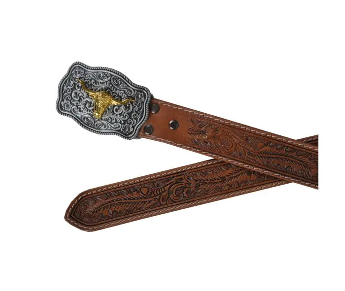 Discover the perfect blend of art and fashion with this stunning hand-tooled leather belt.