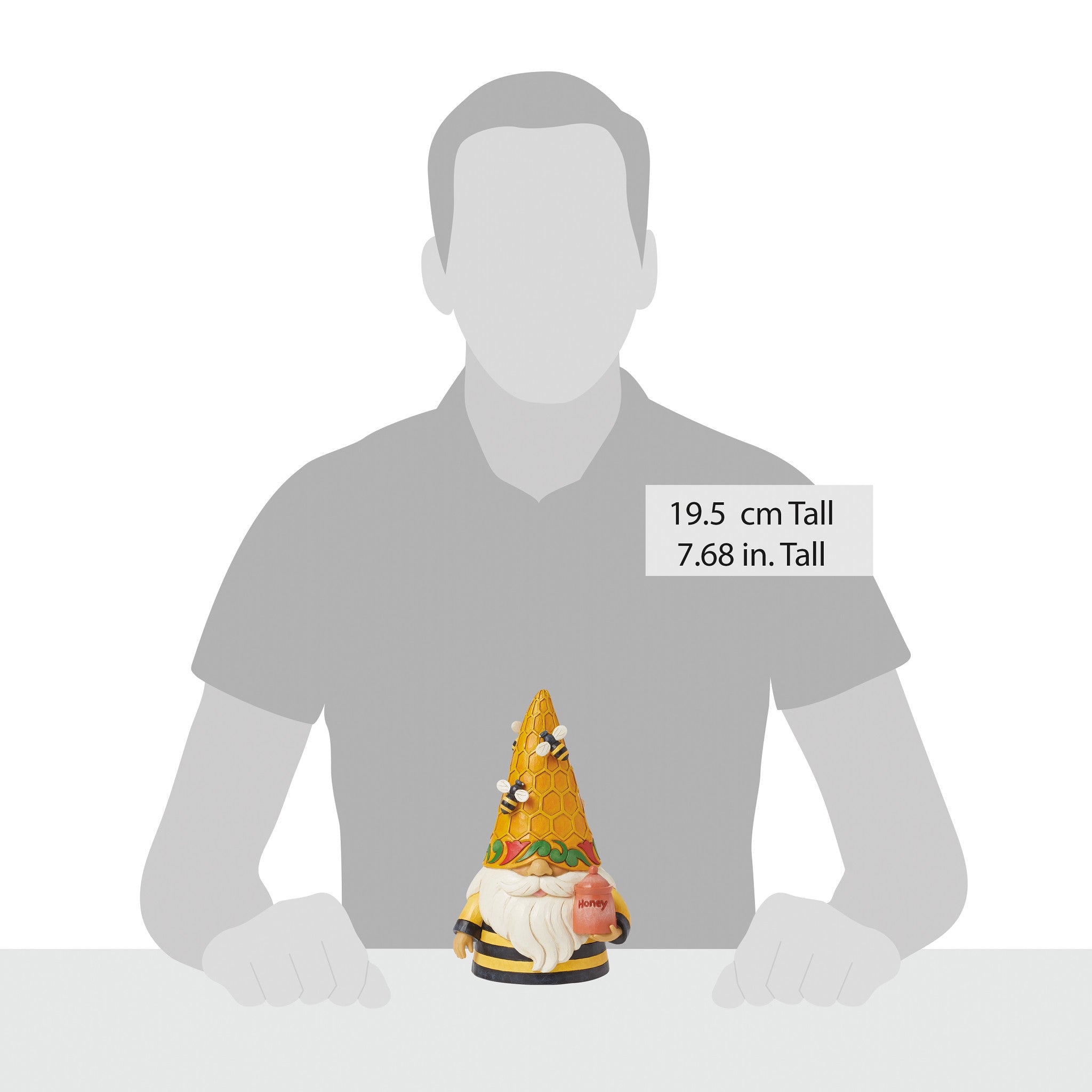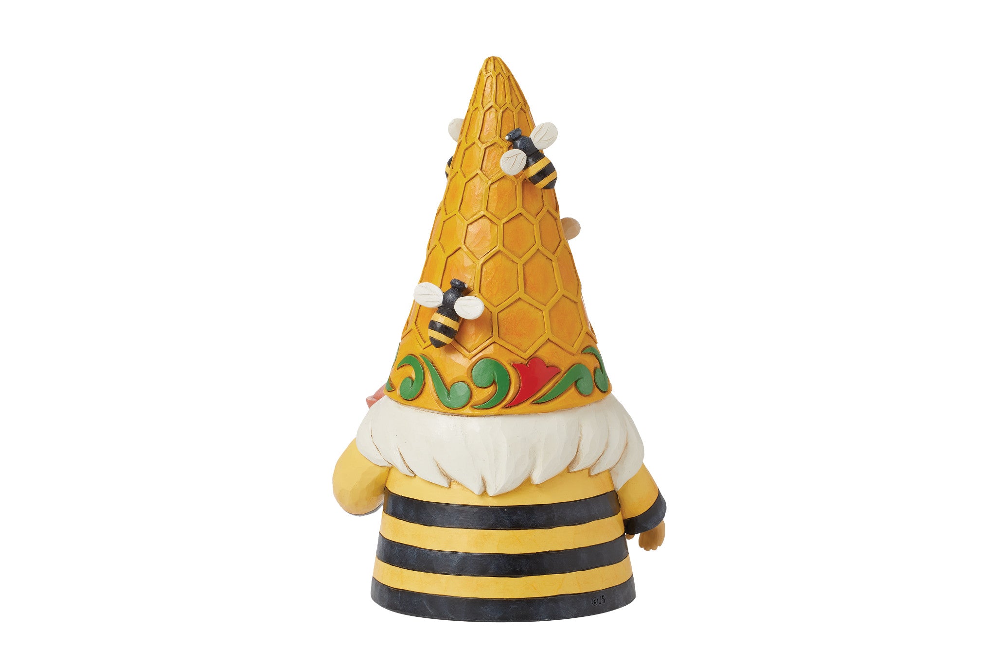 Add a touch of charm to your home with the Jim Shore Heartwood Creek Beehive Gnome! No one brings gnomes to life quite like Jim Shore, and this sweet little gnome is "Bee-ing Cute" in his bumblebee-inspired outfit. Dressed in vibrant black and yellow, he wears a honeycomb hat buzzing with tiny bees and holds a honey jar that’s brimming with golden delight, symbolizing the sweetness of nature's bounty. Crafted with Jim Shore's signature folk-art style, this 7.68-inch figurine features hand-painted, intricate quilt patterns and motifs inspired by American and European heritage. This whimsical gnome makes a delightful addition to any home or collection, capturing Jim Shore’s heartwarming artistry and attention to detail.