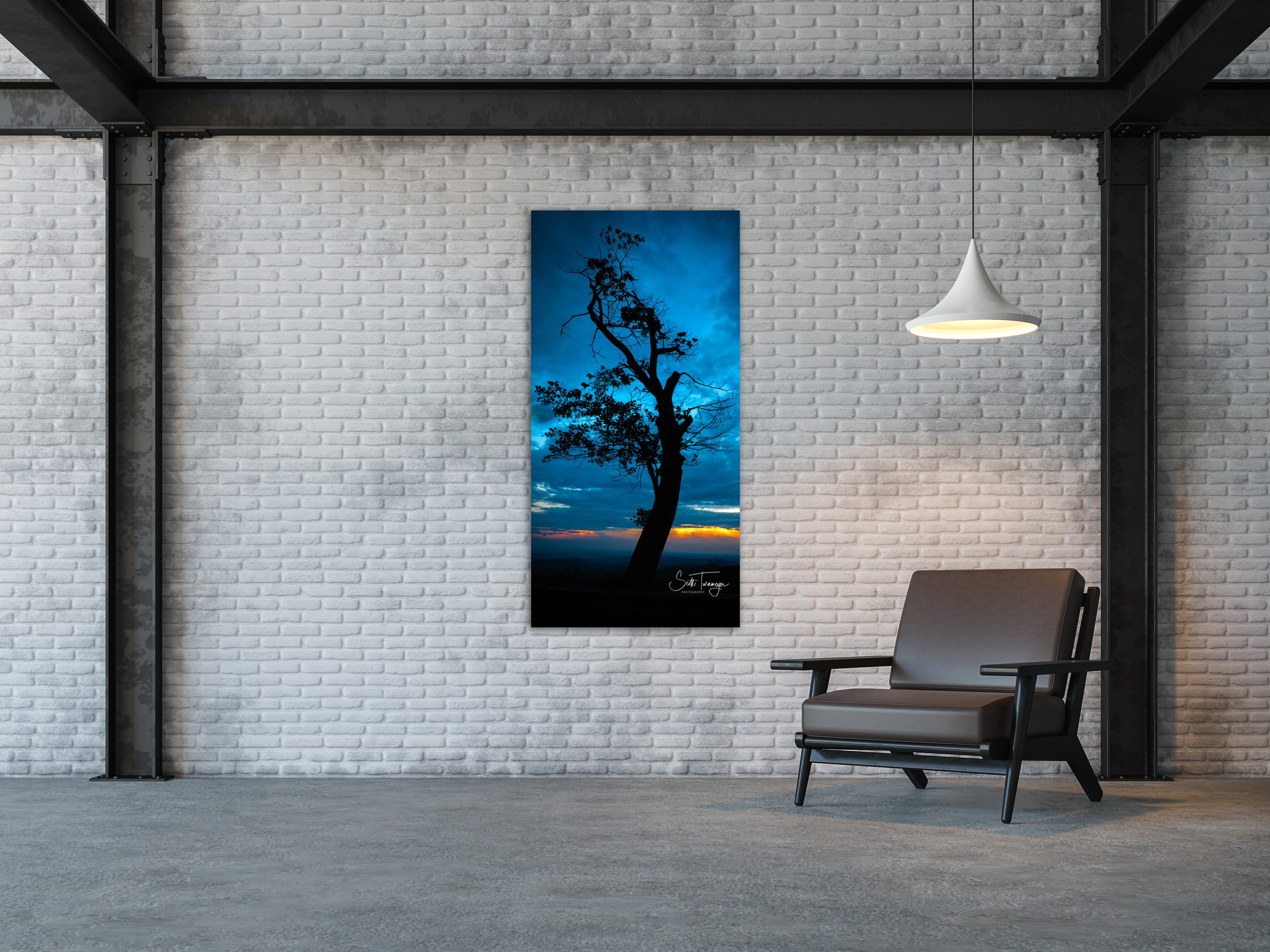 Turnmeyer's expert eye for composition and detail ensures that every element of this scene is perfectly captured, from the intricate branches of the tree to the ethereal quality of the light. Printed on high-quality archival paper, "The Blue Tree" preserves the vivid colors and subtle nuances of the original moment, allowing you to bring a touch of natural elegance into your home or office.