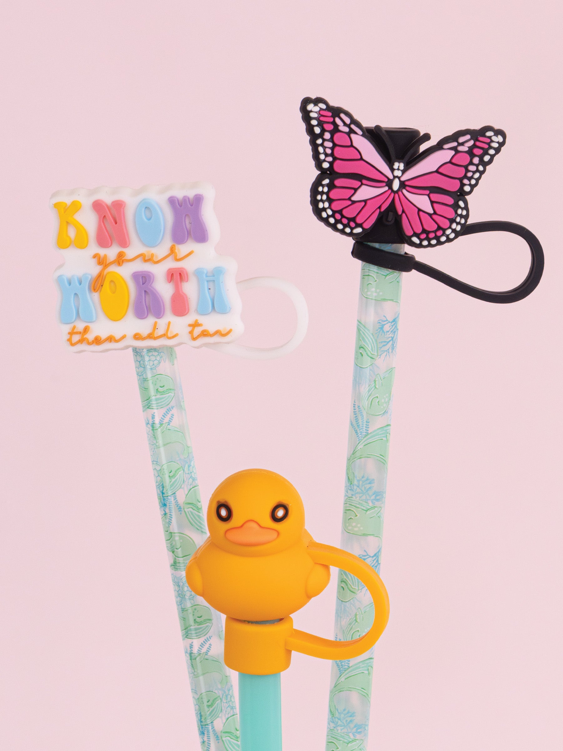 Add a touch of fun to your drinks with Simply Southern Rubber Straw Covers! Each pack includes four unique designs, offering a playful and practical way to keep your straw clean and stylish. Made from durable, flexible rubber, these covers fit most standard straws and help protect against dust and spills. With multiple adorable designs to choose from, they're perfect for personalizing your favorite tumbler or cup. Whether at home or on the go, sip in style with Simply Southern!