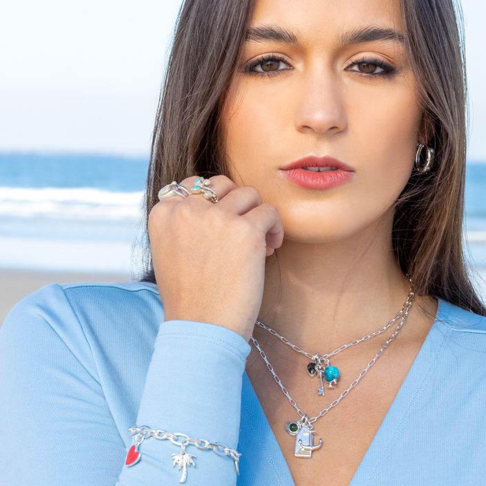 Measuring approximately 27mm in length and 12mm in width at its widest point, the globe charm is designed to fit seamlessly with our Collectible Travel Treasures™ bracelets, chains, and earrings. The 10mm Mojave Blue Turquoise bead adds a touch of natural elegance, symbolizing where you’ve been, where you love, and where you’re going.