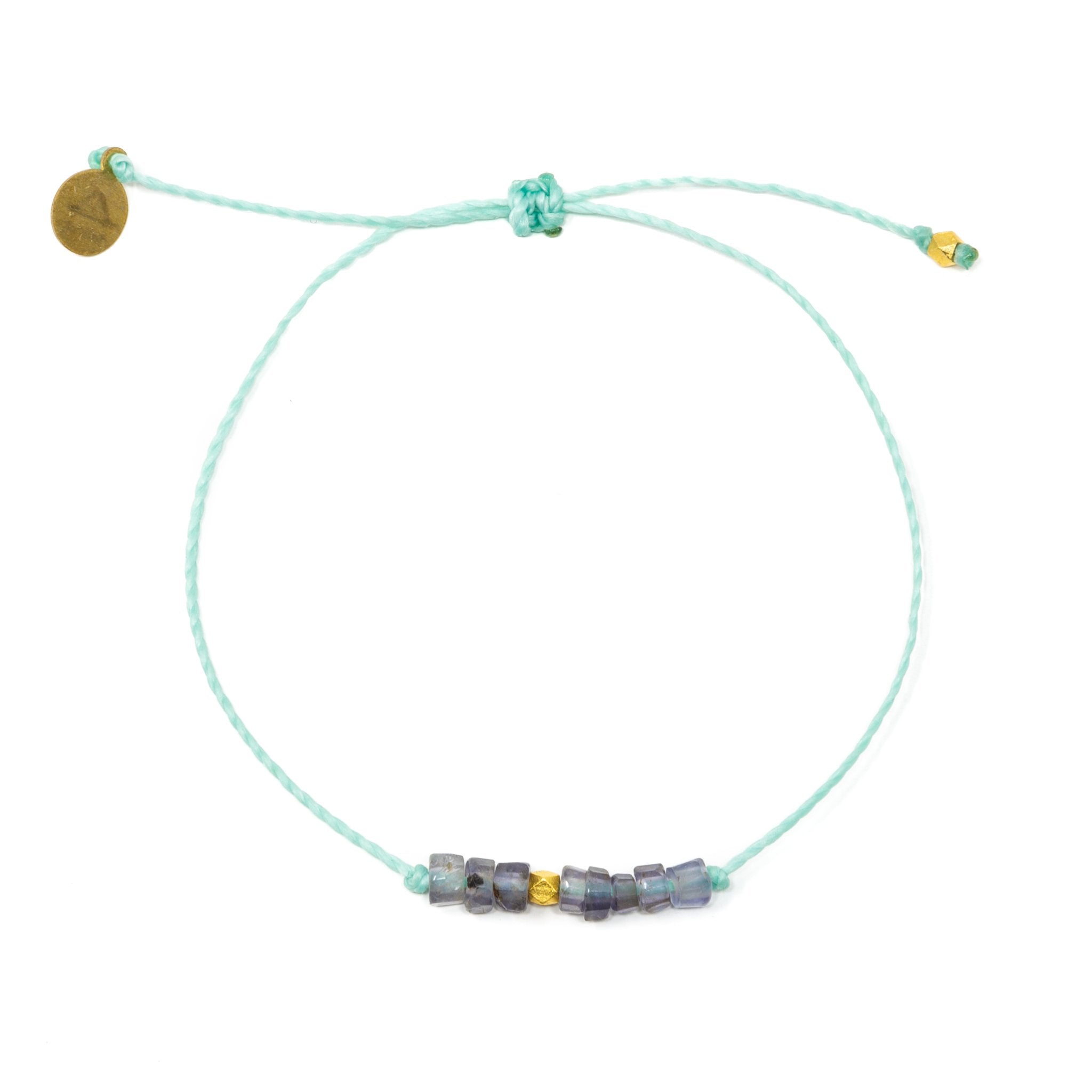 Handmade Intention Bead and Rope Bracelet in Silver - Lolite & Cucumber(Strength, Resolve and Discipline)