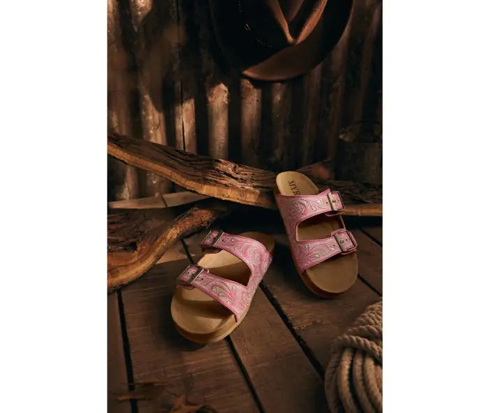 Step into summer with a burst of vibrant style in the Blossoms, trendy Myra Hand Tooled Leather Sandals. These captivating women's sandals feature a stunning pink magenta hue that adds a playful pop to any outfit. Hand tooled leather for a unique, artisanal touch, the supple leather upper ensures a comfortable, secure fit. Designed with an EVA comfort sole, these Myra sandals offer easy wear for all-day comfort. Perfect for strolling through bustling markets or lounging poolside, the Blossom Sandals from Myra are your go-to for adding a splash of personality to your summer ensemble.