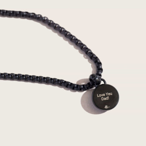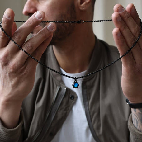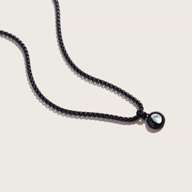 Crafted from durable stainless steel and coated in a sleek black matte finish, the Orion Necklace is a statement of bold style. The 10mm moon image adds a touch of personalized charm, allowing you to carry your most beautiful memories wherever you go.
