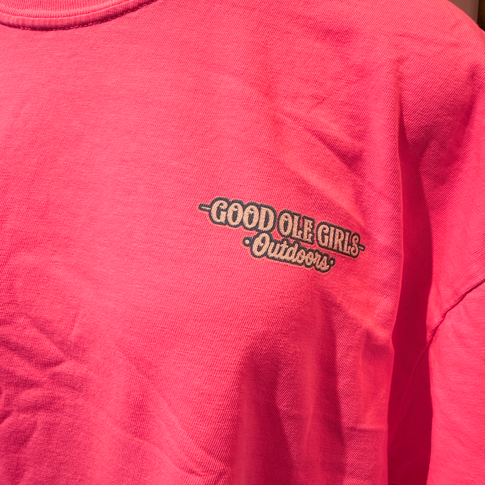 Stay stylish in the great outdoors or on casual days with the Good Ole Girls super soft women’s graphic tee. Made from 100% ring-spun cotton, this short-sleeve t-shirt offers unbeatable comfort with its unisex fit, perfect for every adventure. Featuring a playful duck in a pink camo hat graphic on the back, this women’s t-shirt is a standout piece. Designed on the ever-popular Comfort Colors tee, it’s breathable, durable, and feels amazing all day. Whether paired with jeans or leggings, this tee is a must-have for fans of casual, graphic style.