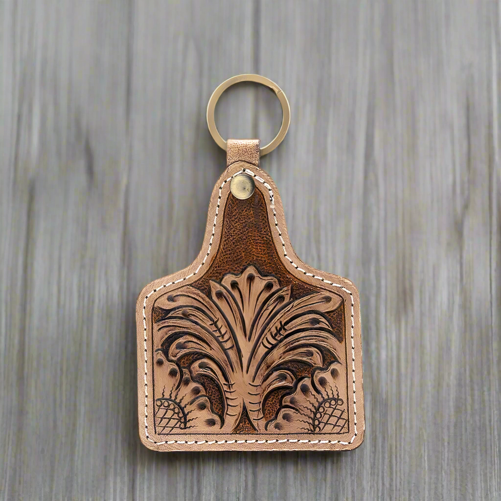 Elevate your everyday essentials with our Times Now & Then Hand-Tooled Leather Key Fob, a timeless accessory that seamlessly blends vintage charm with contemporary style. Crafted from premium leather, this exquisite fob features detailed scrollwork embraced by two-tone leather, creating a captivating and sophisticated design.