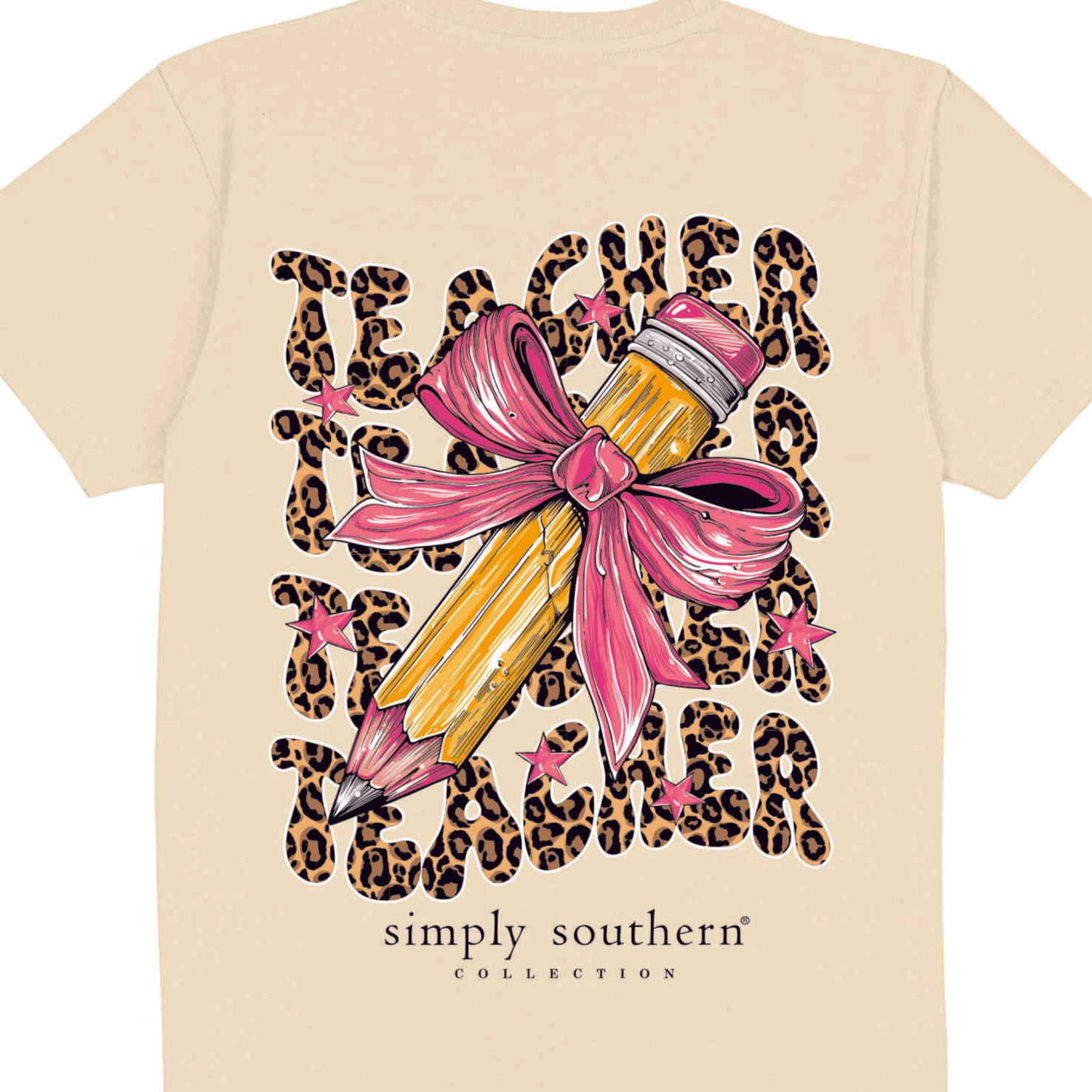 Celebrate your love for teaching with the Simply Southern Teacher Graphic T-shirt! This fun and stylish women’s t-shirt features a bold, playful design with the words "Teacher Teacher Teacher Teacher" in trendy leopard print, making it the perfect choice for any educator.