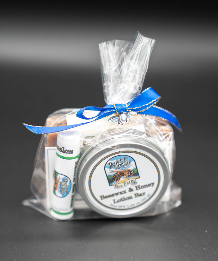 These gift bags make perfect gifts for almost any occasion! Included are a Natural Honey and Beeswax Soap, one of our fantastic Bee Balms, and our one of a kind Luxurious Honey and Beeswax Lotion Bars!