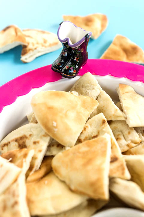 The nine colorful bands add a pop of color to the melamine chip & dip platter. great to mix and match with your favorite minis! New pieces are on the way that will utilize the bands as well.