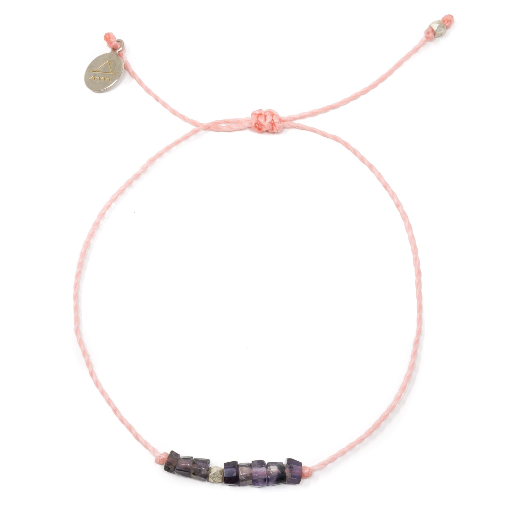 Handmade Intention Bead and Rope Bracelet in Silver - Lolite & Pink (Strength, Resolve and Discipline)