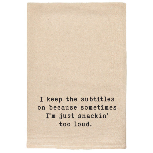 Snackin' in Style: Natural Cotton Tea Towel - 'Subtitles On for Loud Snackin