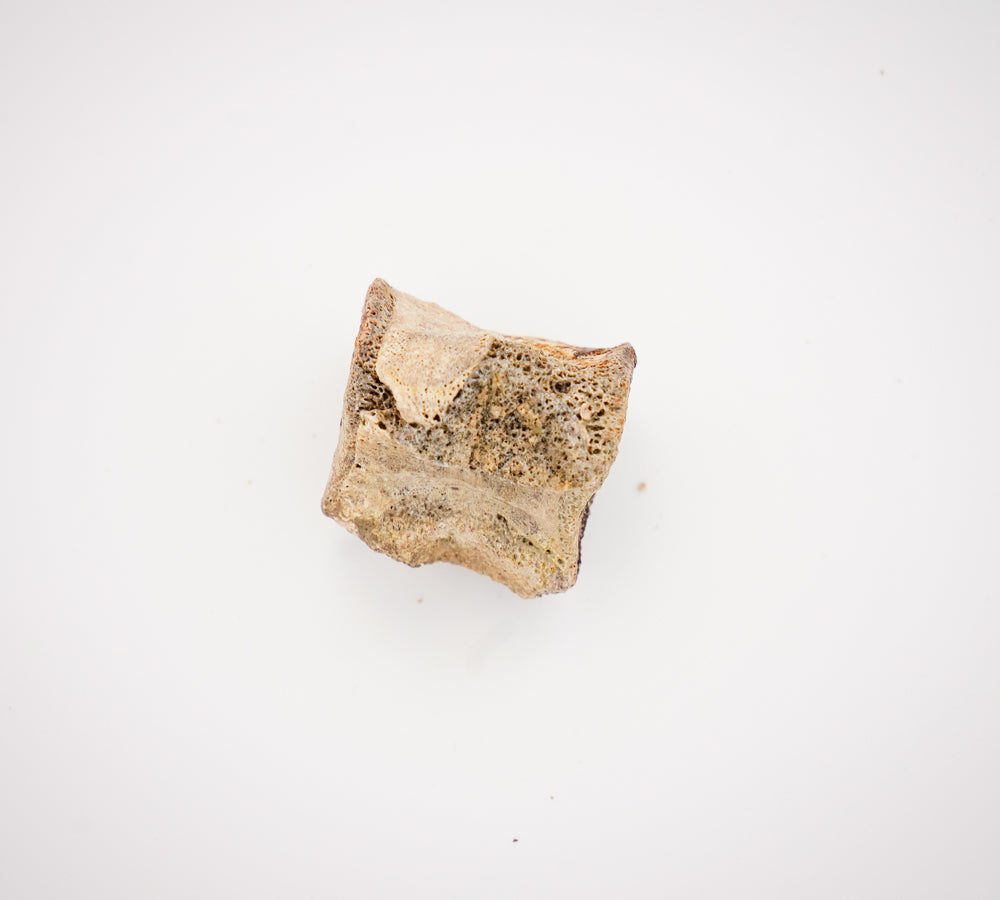 This is a ~.75"x.75"x.75" vertebrate bone from a real dinosaur. Species is a type of Champosaur. The is a general vertebrate, pictures may or may not be of the one that you receive. This fossil was collected in the Hell Creek Formation of Perkins County, SD. It was collected on private land with owner's permission.