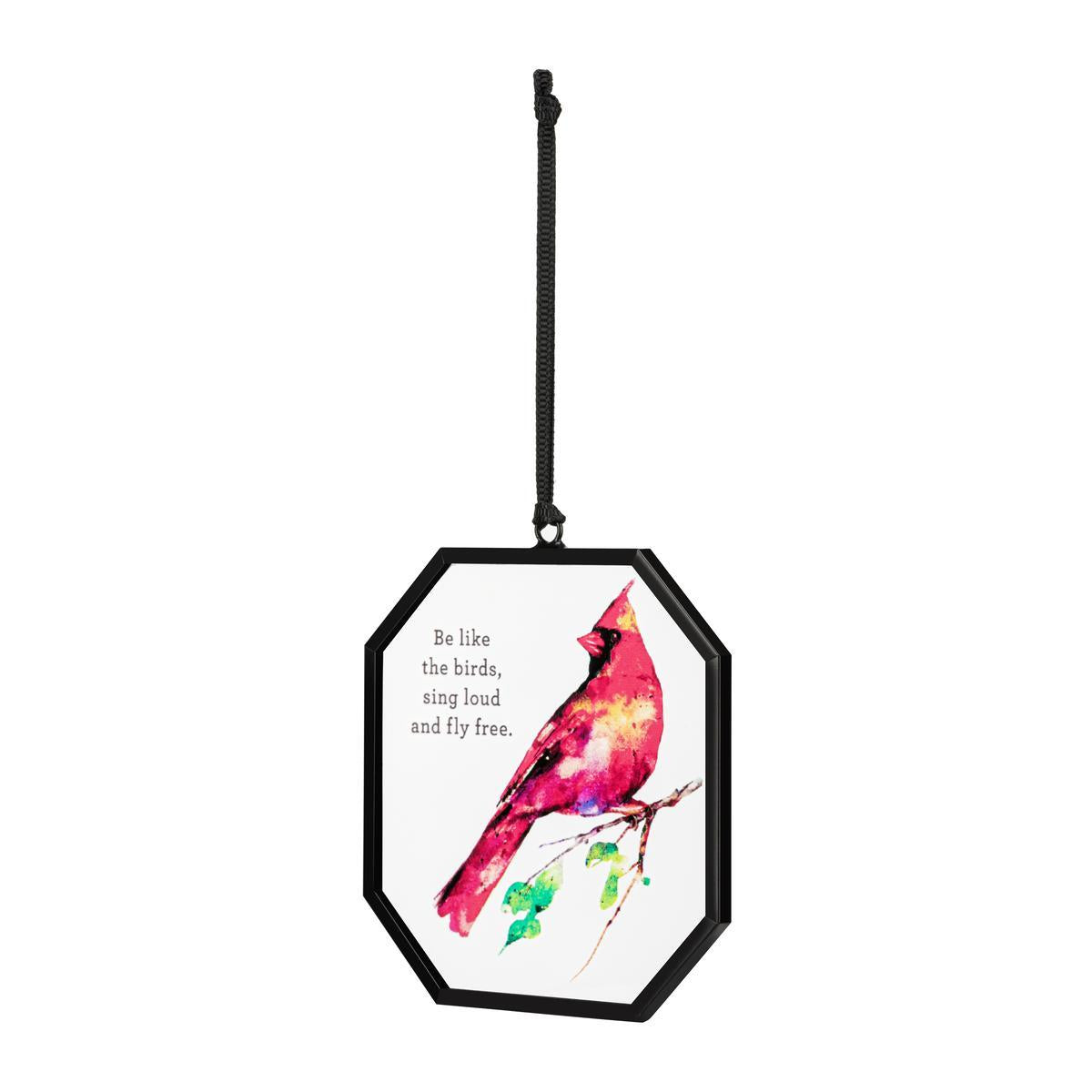 righten your space with this stunning Dean Crouser suncatcher featuring a vibrant cardinal perched in a tree. Adorned with the inspiring phrase, "Be like the birds, sing loud and fly free," this 3" x 3" art piece captures the beauty of nature and the spirit of freedom. Made of durable iron and complete with a cord for easy hanging, it’s perfect for adding a touch of joy to any window, porch, or garden. This heartfelt suncatcher makes a meaningful gift for bird lovers and those who treasure uplifting messages.