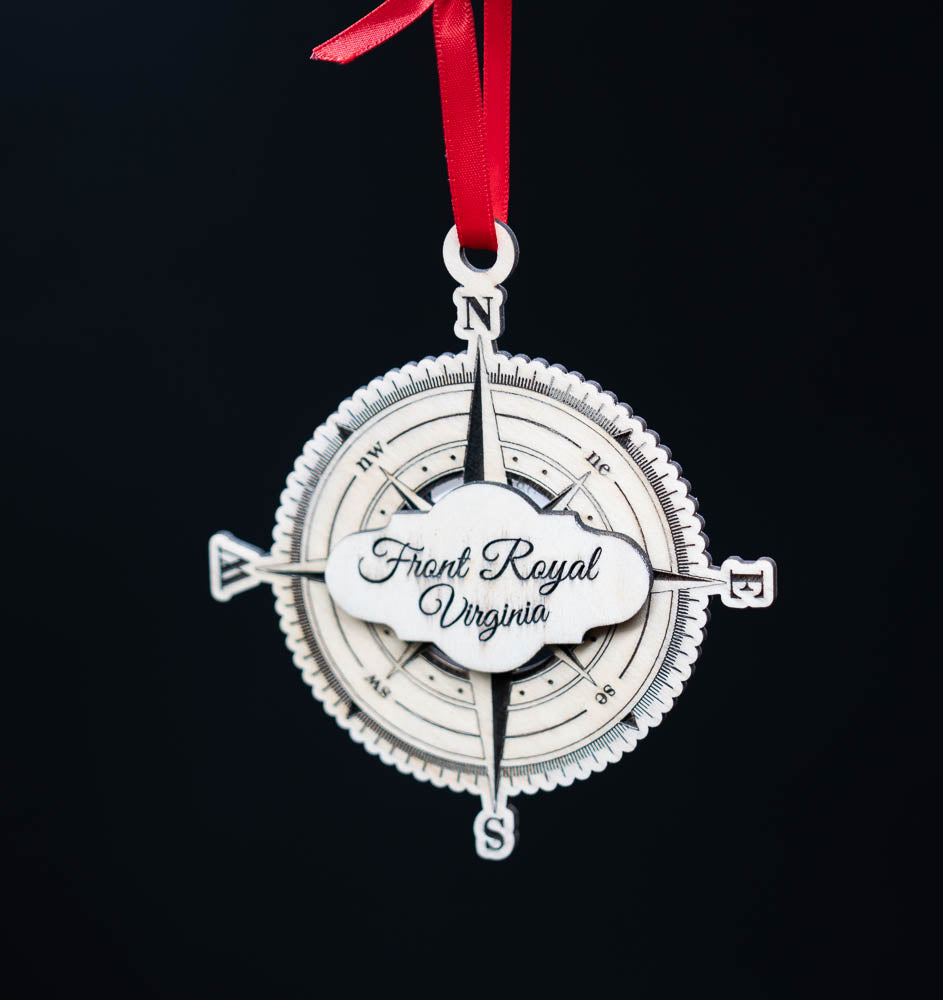 Front Royal Virginia 2 Layer Compass Wooden Ornament with Ribbon