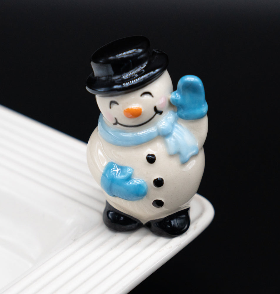 Bring some extra cheer to your home with the Frosty Pal snowman Mini by Nora Fleming. This mini is crafted from ceramic fits in any Nora Fleming base. Perfect for any season, it will surely add a dash of color and life to your home decor.