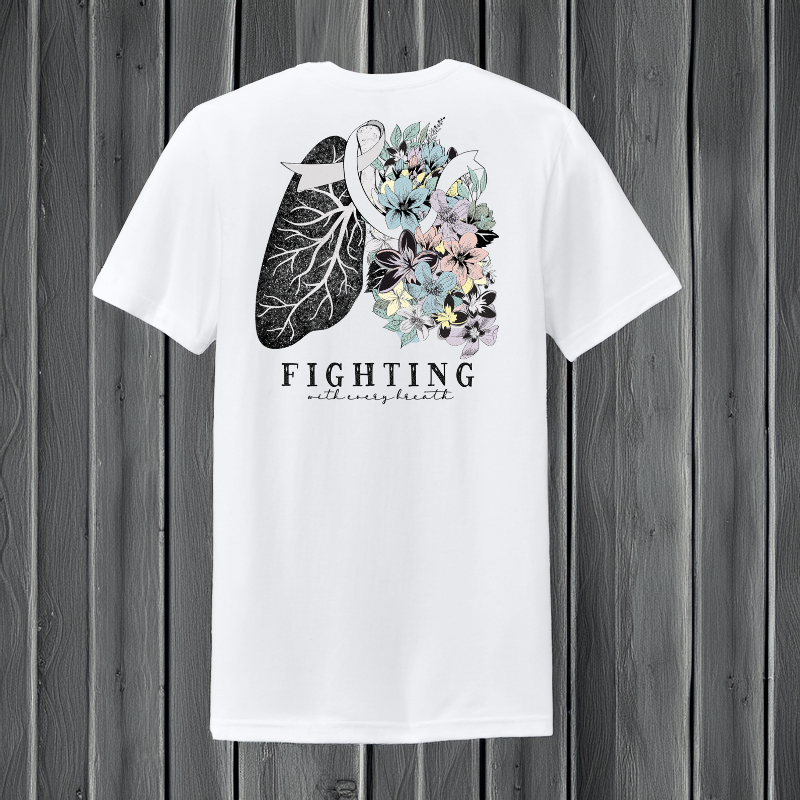 Show your support during Lung Cancer Awareness Month with this Back Porch Apparel short sleeve tee. Featuring the white lung cancer ribbon surrounded by delicate flowers, this shirt is a meaningful way to raise awareness and honor loved ones. Available in multiple colors with the option to place the design on the front or back, it’s crafted from a soft cotton/polyester blend for all-day comfort.