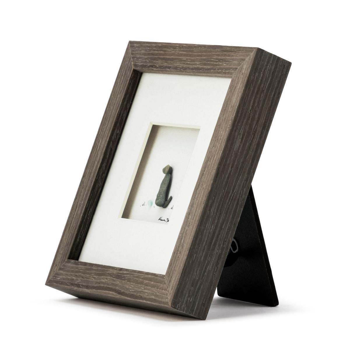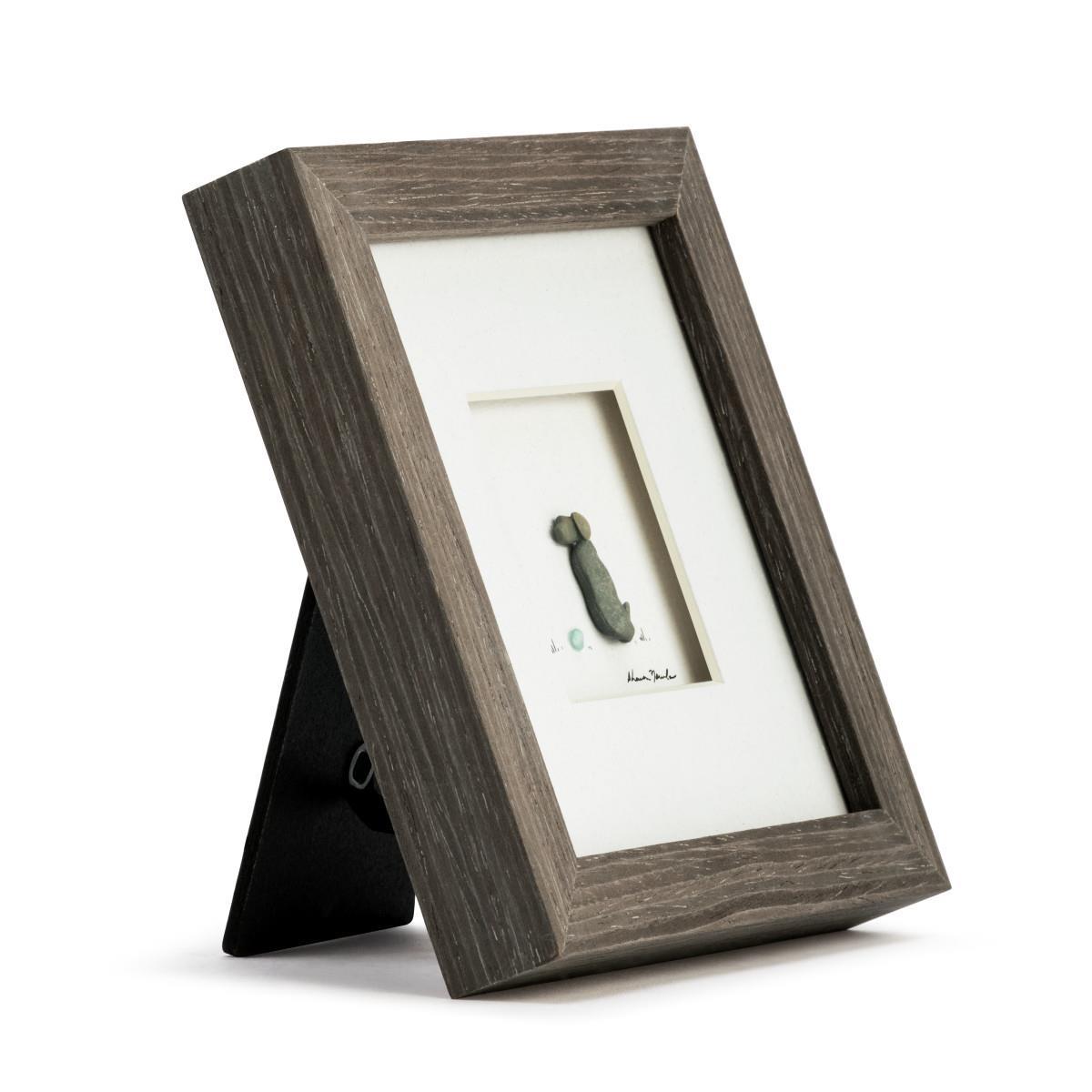 Framed in a minimalist style, this versatile artwork can be displayed on a wall or placed on a desk or shelf using its built-in easel. Perfect for dog lovers and those who appreciate unique, nature-inspired decor, it’s a heartfelt addition to any space.