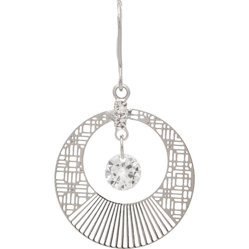 Rain Jewelry Silver Filigree Disc CZ Drop Earrings