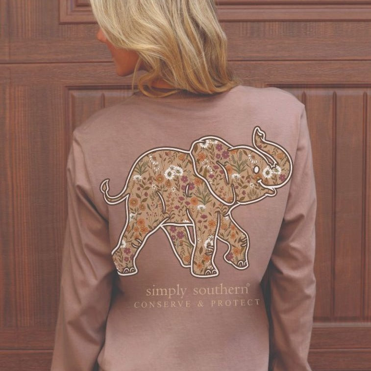 Simply Southern Women's Long Sleeve T-Shirt - Elephant Tracking Floral Print