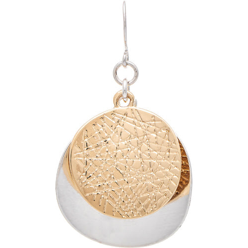 Rain Jewelry Two Toned Crosshatched Layer Disc Earrings