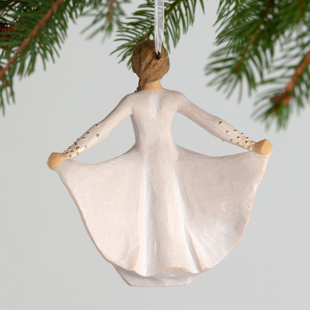 Perfect for celebrating friends, colleagues, teachers, graduates, new parents, and marking birthdays, engagements, anniversaries, weddings, and more, our "Surrounded by Love" Angel Ornament communicates sentiments that transcend words. Give the timeless gift of Willow Tree® and let its radiant beauty convey the depth of affection and support, capturing the essence of life's journey in a tender and unforgettable manner.