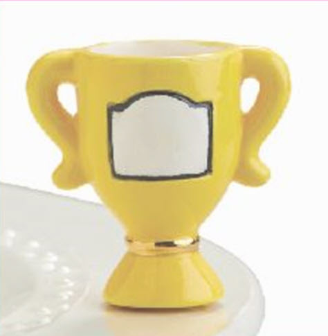 Bring some extra cheer to your home with the Winner, Winner Trophy Mini by Nora Fleming. This mini is crafted from ceramic fits in any Nora Fleming base. Perfect for any season, it will surely add a dash of color and life to your home decor.